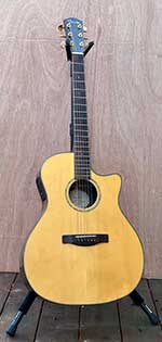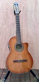 Lamenting that I had no recordings prior to 2001, I dug through a box of around 50 reel-to-reel tapes I'd been dragging around since 1974. BONANZA! I found tapes I'd completely forgotten about: Korea, Key West, SoCal, Oroville, and Bellingham. Everything above "Hey Old Guy: 2001"! Well, not quite. A feature of a number of tape boxes was the titles were in red felt-tip pen, as well a some writings I attributed to the same time period/locations. So I dove back into the tape box to see if there was any more red lettering. Basically hidden on a Julian Bream tape, in faded red felt-tip pen, I noticed "July 11, 1977 T. Jams," putting it in SoCal. So, that rounds out the songs from 1975 to 2002+. The guitars and their stories are below: click the pictures.