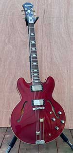 I've got quite the international assortment of instruments: Epiphone Riviera, USA; Fender Telecaster, Mexico; Ovation Adamas, USA; Fender acoustic flat top, Korea; Conrad 12-string, Japan; Dorado classical, Japan; Epiphone Les Paul, Korea; Fender Telecaster, Indonesia; Fender Stratocaster, Mexico; La Patrie classical, Canada.